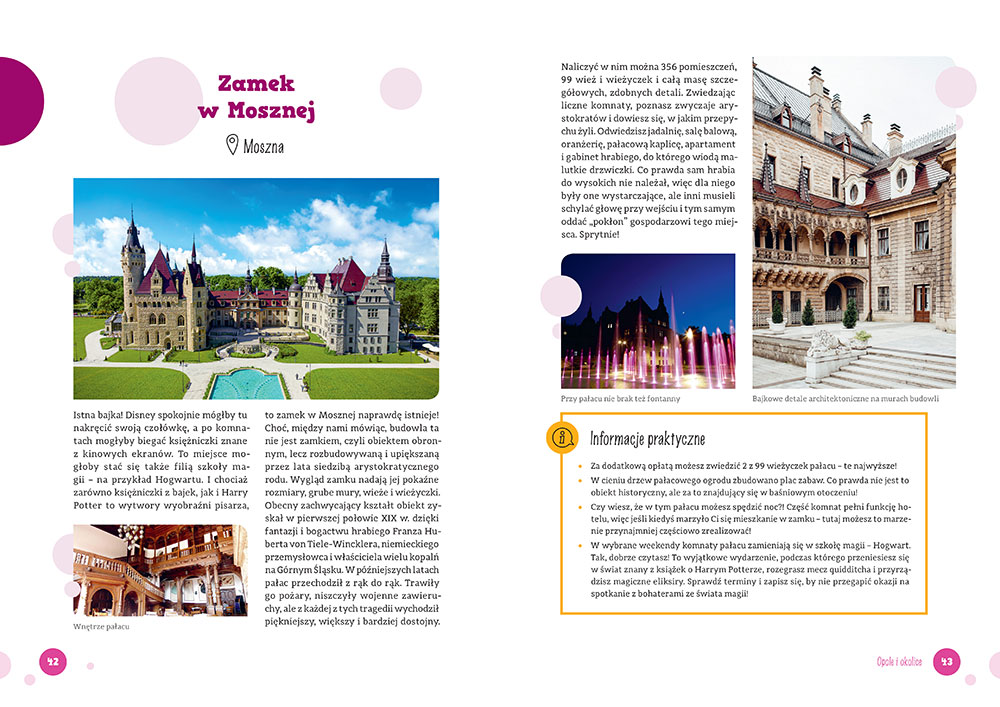 W ksi±¿ce znajdziecie opisy niezwyk³ych miejsc z ró¿nych regionów Polski, mnóstwo ciekawostek, praktyczne wskazówki oraz pomys³y na to, co warto zobaczyæ i jak przygotowaæ siê do wycieczki. S± tu tak¿e podró¿nicze wyzwania i kreatywne zadania, dziêki którym ka¿da wyprawa staje siê jeszcze ciekawsza, a zdobyta wiedza zostaje z czytelnikiem na d³u¿ej.