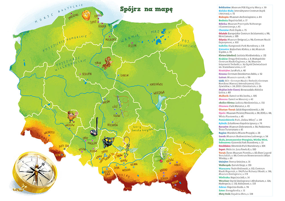 Po bli¿szych i dalszych zak±tkach kraju oprowadzaj± czytelników niezwykli przewodnicy znani z lokalnych legend i tradycji, tacy jak Smok Wawelski, bursztyn z ba³tyckiej pla¿y czy jeden z wroc³awskich krasnoludków. Dziêki temu podró¿owanie zamienia siê w pe³n± humoru i niespodzianek przygodê.