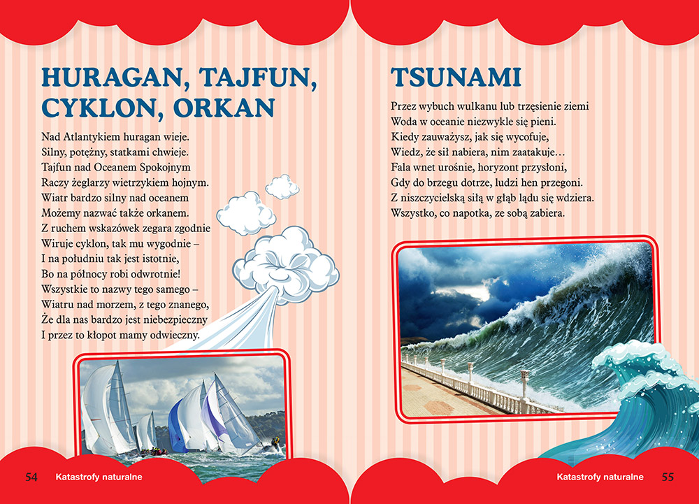 Dziecko dowie się więc, czym jest burza, skąd się bierze śnieg, jak powstaje mgła, dlaczego czasem zdarzają się powodzie czy na czym polega wybuch wulkanu. Książeczka prezentuje też krajobrazy świata wraz z rymowanym opisem, zabierając malucha w fascynującą podróż przez całą Ziemię. Gorąco polecamy wszystkim maluchom ciekawym świata!