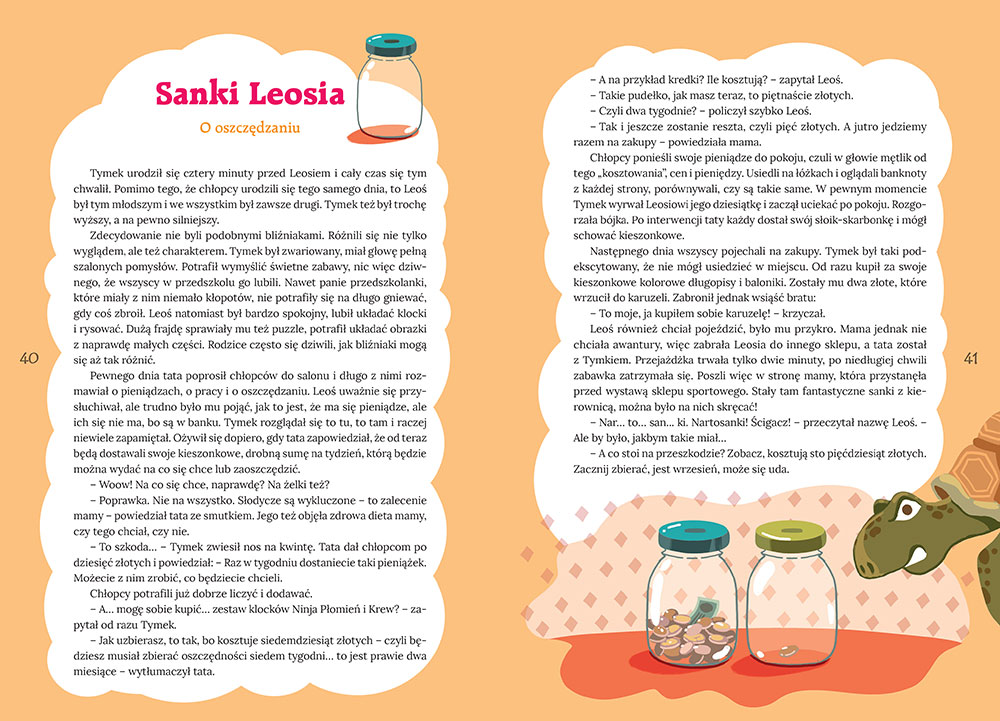 W każdej z historii przedstawiona jest sytuacja, z którą musi zmierzyć się dziecko, będące jej uczestnikiem. Dzięki temu mamy okazję do jej przeanalizowania z młodym czytelnikiem, inspirację do rozmowy na ważny temat i wspólne poszukiwanie najlepszego z rozwiązań czy też prawidłowego zachowania. Bardzo lubię takie pozycje, które inspirują do rozwiązywania problemów, a nie podsuwają gotowe recepty. Myślę, że dzięki temu będzie łatwiej maluchowi poradzić sobie również w innych sytuacjach.