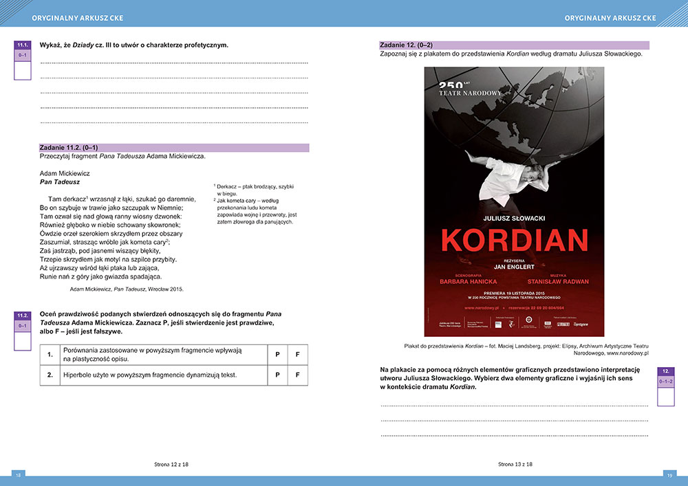 Wszystkie repetytoria i arkusze do matury oraz egzaminu ósmoklasisty, a także opracowania lektur i wierszy, obecnie dostępne w naszej księgarni internetowej, są zgodne z aktualnie obowiązującą podstawą programową. Dotyczy to książek bez dodatkowych oznaczeń na okładkach, jak również tych z oznaczeniami: NOWA PODSTAWA PROGRAMOWA 2024–2026, PODSTAWA PROGRAMOWA 2024, PODSTAWA PROGRAMOWA DO 2026 lub ZGODNE Z WYMAGANIAMI CKE. W przypadku egzemplarzy w obwolutach informacje o treściach nieobowiązujących według nowej podstawy programowej znajdują się na obwolucie.