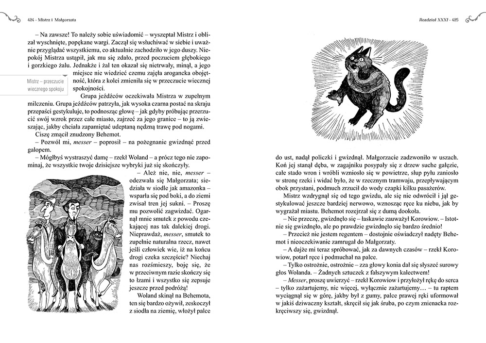 Powieść w całkowicie nowym, pełnym tłumaczeniu, zgodnym z oryginałem i pozbawionym cięć dokonanych na nim przez rosyjską cenzurę! (...) Nie chcę po raz kolejny rozwodzić się nad wydaniem książki od wydawnictwa Greg, ale ciągle jestem zachwycona tą ich dbałością o każdy szczegół. Widać, że przykładają ogromną uwagę do zadowolenia klienta (...) Książka Bułhakowa zaimponowała mi niesamowicie. Ogólnie rzecz ujmując, dosłownie podziwiam umiejętności autora. Stworzyć coś tak fantastycznego z pewnością nie było łatwo, a jeszcze z takim rozmachem, dowcipem i fantazją, to już w zupełności. Mam wrażenie, że Mistrza i Małgorzatę można czytać wielokrotnie i za każdym razem odkrywać w tej książce coś nowego. Gorąco polecam tak znaną, a jednocześnie tak dobrą lekturę.