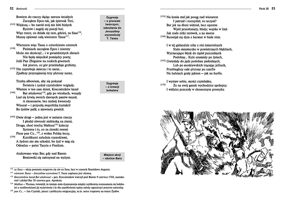 Wydanie Beniowskiego kompletne bez skrótów i ciêæ w tre¶ci. W tym wydaniu znajdziesz odpowiedzi na pytania z podrêcznika - „pewniak na te¶cie”, czyli wskazanie zagadnieñ, które zwykle pojawiaj± siê w pytaniach z danej lektury we wszelkich testach sprawdzaj±cych wiedzê, a tak¿e w podrêcznikach i na klasówkach. Ksi±¿ka zawiera pe³en tekst lektury. Na koñcu ksi±¿ki zamieszczono opracowanie, w którym znajduje siê bardzo szczegó³owe streszczenie oraz drugie skrócone, u³atwiaj±ce szybkie przygotowanie siê przed lekcj±. Opracowanie zawiera ponadto plan wydarzeñ, wnikliwie wyja¶nion± problematykê oraz szerokie charakterystyki bohaterów.