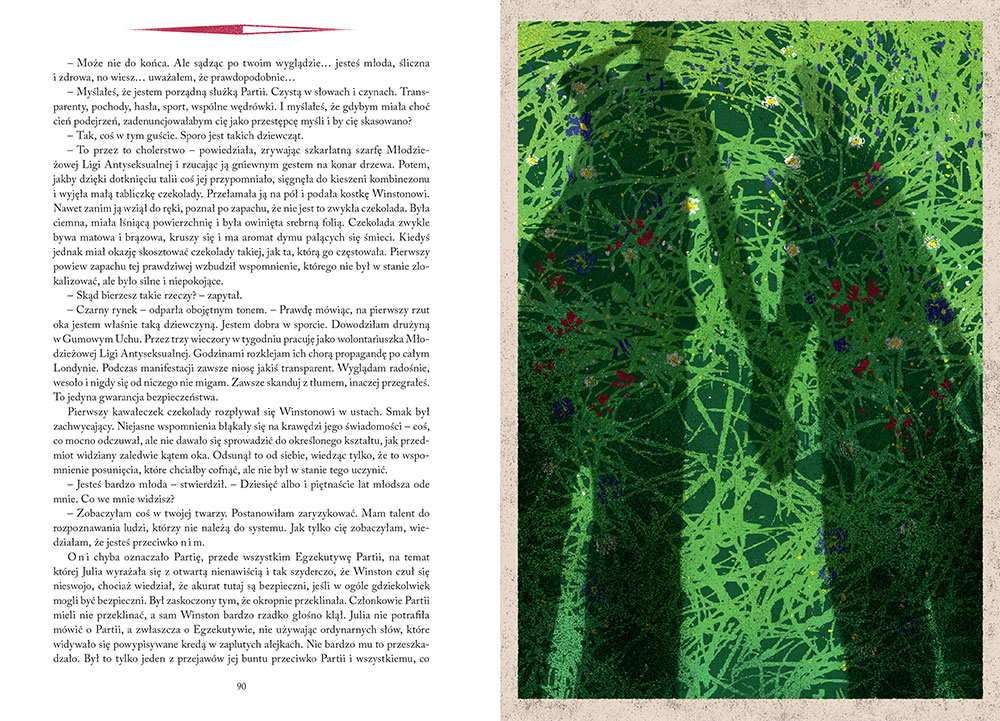 Kiedy zobaczyłam w zapowiedziach tę pozycję, wiedziałam, że dołączy do mojej biblioteczki. Byłam pewna, że ta książka będzie tak samo wspaniałe wydana jak cała seria Kolorowa Klasyka - przepiękne ilustracje, idealny papier i wielkość czcionki, same piękne tytuły. „Rok 1984” to kolejna perełka wydawnicza. Pan Kamil Rekosz stworzył niesamowite ilustracje, które idealnie oddają klimat tej ponadczasowej powieści.
