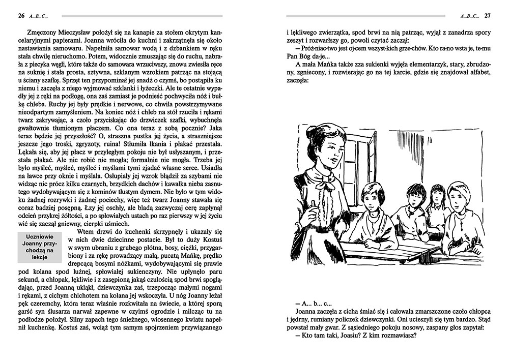 Wydanie A... B... C... kompletne bez skrótów i cięć w treści. W tym wydaniu znajdziesz odpowiedzi na pytania z podręcznika - „pewniak na teście”, czyli wskazanie zagadnień, które zwykle pojawiają się w pytaniach z danej lektury we wszelkich testach sprawdzających wiedzę, a także w podręcznikach i na klasówkach. Książka zawiera pełen tekst lektury. Na końcu książki zamieszczono opracowanie, w którym znajduje się bardzo szczegółowe streszczenie oraz drugie skrócone, ułatwiające szybkie przygotowanie się przed lekcją. Opracowanie zawiera ponadto plan wydarzeń, wnikliwie wyjaśnioną problematykę oraz szerokie charakterystyki bohaterów.