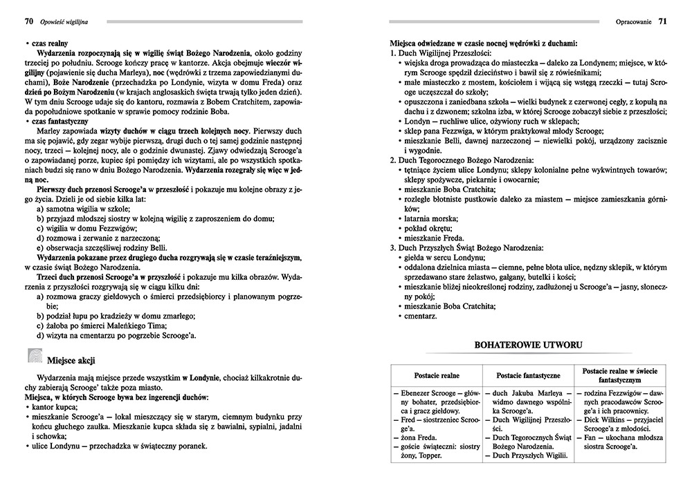 Wydanie Opowieści wigilijnej kompletne bez skrótów i cięć w treści. W tym wydaniu znajdziesz odpowiedzi na pytania z podręcznika - „pewniak na teście”, czyli wskazanie zagadnień, które zwykle pojawiają się w pytaniach z danej lektury we wszelkich testach sprawdzających wiedzę, a także w podręcznikach i na klasówkach. Książka zawiera pełen tekst lektury. Na końcu książki zamieszczono opracowanie, w którym znajduje się bardzo szczegółowe streszczenie oraz drugie skrócone, ułatwiające szybkie przygotowanie się przed lekcją. Opracowanie zawiera ponadto plan wydarzeń, wnikliwie wyjaśnioną problematykę oraz szerokie charakterystyki bohaterów.