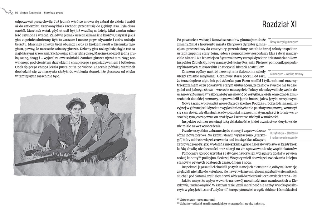 Rusyfikacja dzieci i młodzieży była jedną z podstawowych metod, jaką stosowała Rosja, by na terenach swojego zaboru wynarodowić Polaków i pozbawić ich poczucia polskości. Bohatera powieści, Marcina Borowicza, poznajemy, gdy jako ośmioletnie dziecko zaczyna naukę w rosyjskiej szkole. Obserwujemy jego zmagania ze nauczaniem prowadzonym przez zaborcę, podczas których z małego chłopca wyrasta na młodego Polaka i świadomego patriotę.
